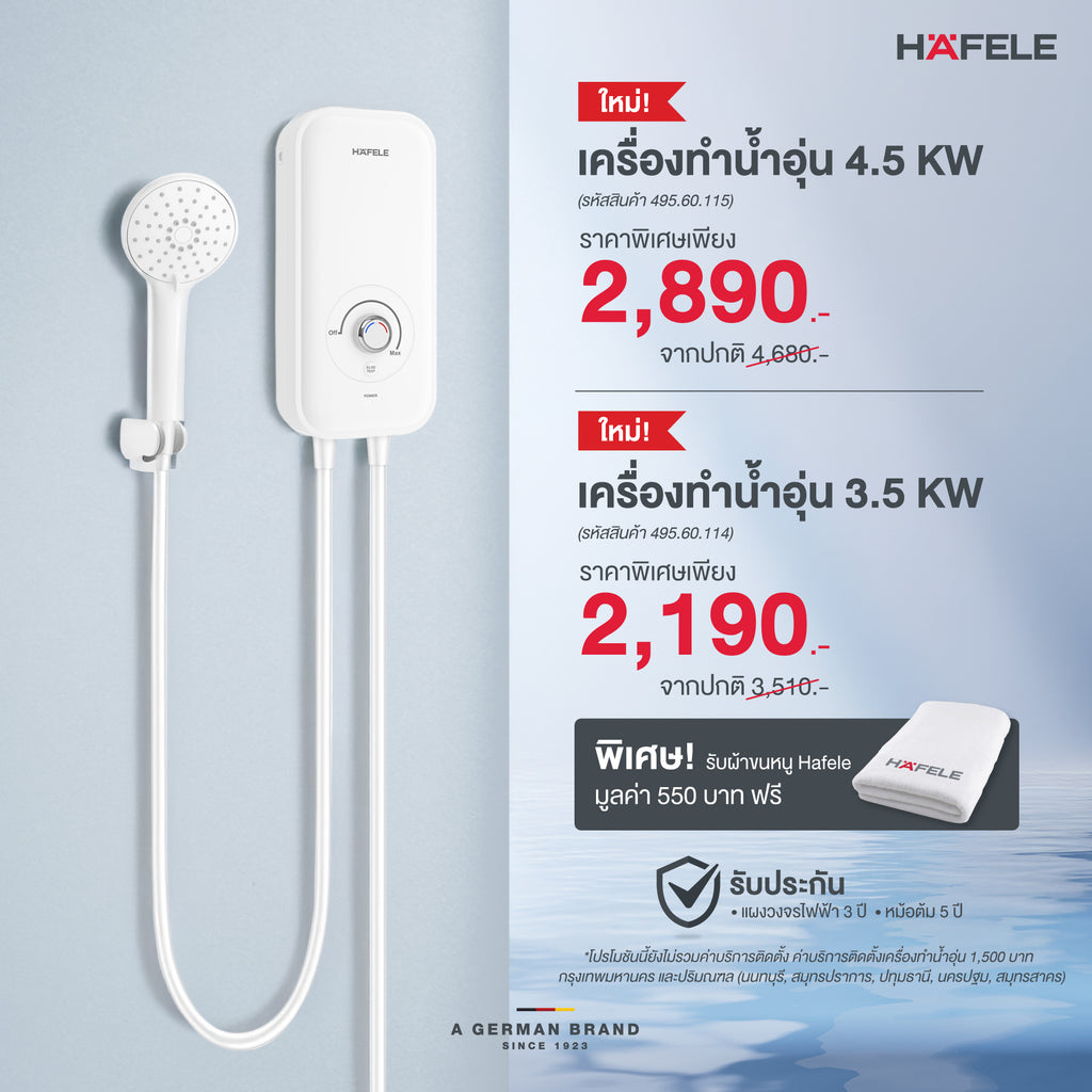 HAFELE เครื่องทำน้ำอุ่น พร้อมชุดฝักบัวสายอ่อน