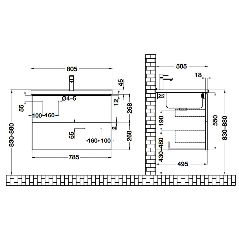 HAFELE ตู้เฟอร์นิเจอร์พร้อมอ่างล้างหน้า รูปแบบติดตั้งแขวนบนผนัง
