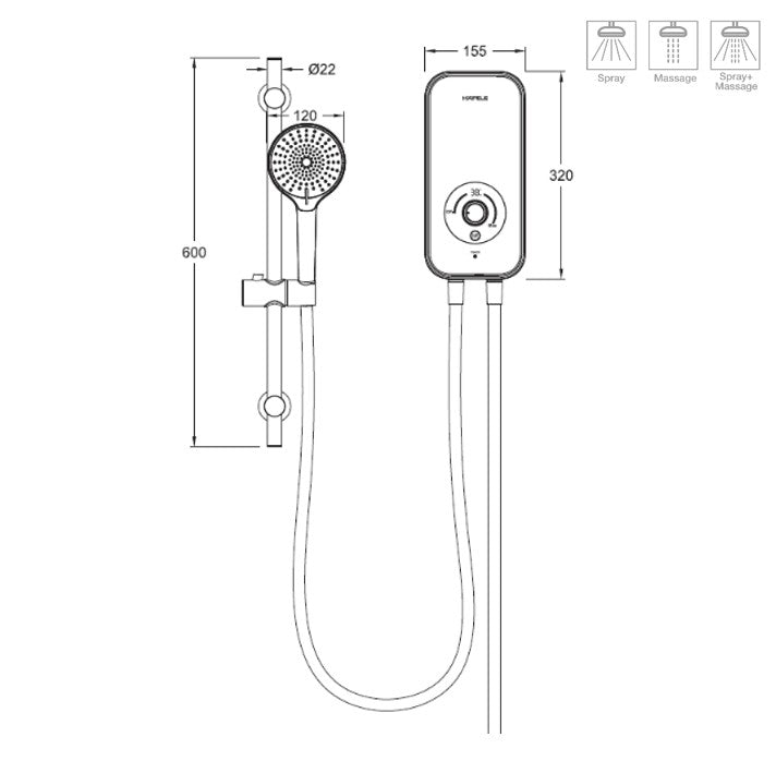 (Pre-Order) HAFELE เครื่องทำน้ำอุ่น พร้อมชุดฝักบัวสายอ่อน